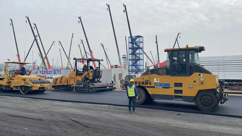 2021年12月29日上午,我公司接到陕建华山路桥的紧急通知,参建西安市高新区方舱医院项目,在疫情蔓延形势复杂严峻的情况下,防控工作刻不容缓,我公司立即将参建放舱医院作为一项特殊时期重要、紧急、光荣的任务,高度重视、迅速响应。各部门职工纷纷主动请缨,积极投身方仓医院建设。由于疫情影响,面对原材料短缺、劳务人员短缺,我们克服了重重困难,迅速集结了30余名管理人员组成施工突击队,第一时间奔赴现场。当天下午4点,组织包括两台ABG8620沥青摊铺机、同步碎石封层车、双钢轮压路机、胶轮压路机、及小型前钢后胶压路机等机械设备已进入工地现场。同时前场技术员、施工员、安全员、后勤员、运输队均已进入各自工作岗位。12月29日起,连夜生产8000余吨二灰碎石混合料,道路面层采用沥青混合料进行铺设,生产成品沥青混合料5000余吨,经过全体人员不分昼夜,紧张有序的连续施工,高新区放舱医院项目顺利完成。